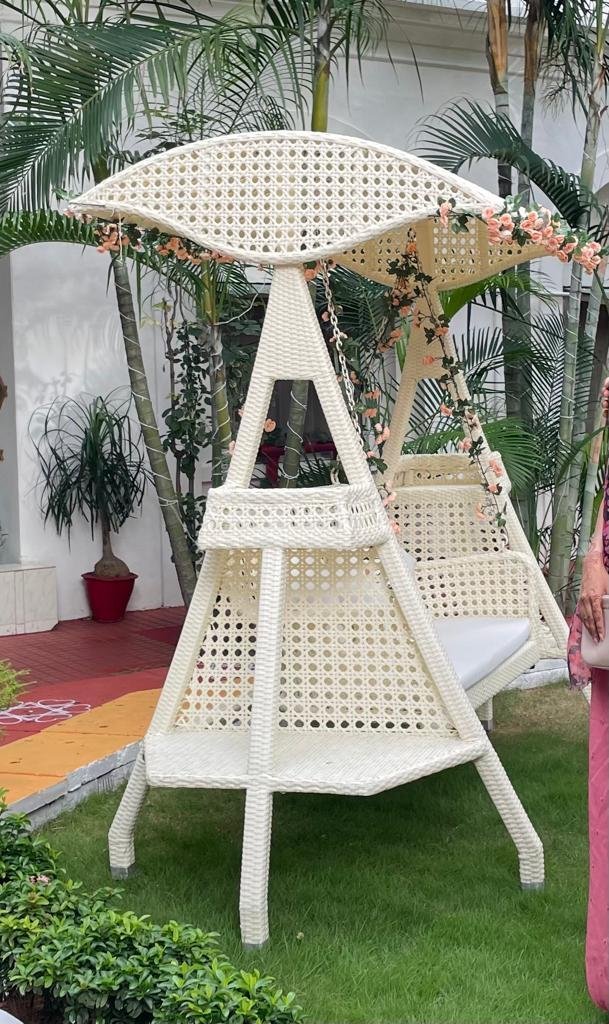 Outdoor garden saving double seater with stand bunai PVC Ratan vikar frame iron